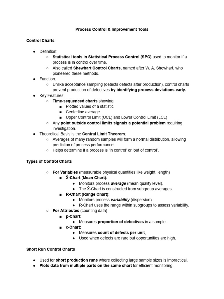 Process Control & Improvement Tools
