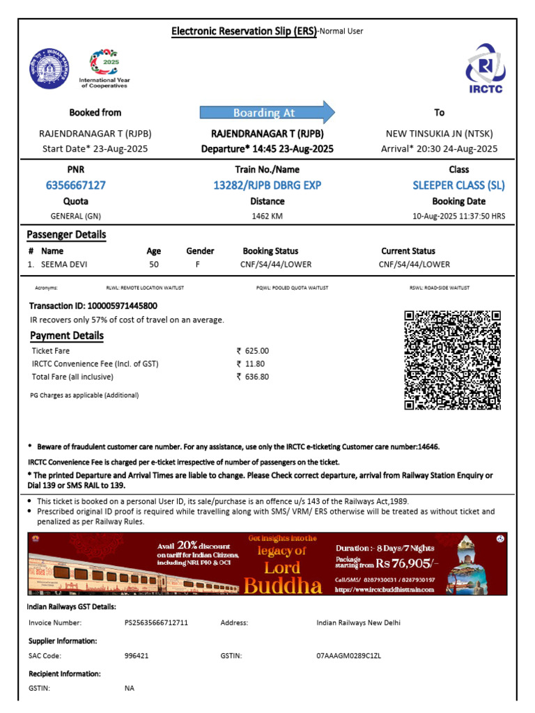 Invoice Number: PS25635666712711 Address: Indian Railways New Delhi