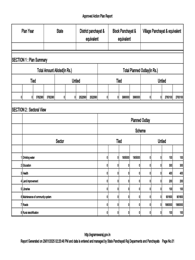 Report Generated on 29/01/2025 02:25:48 PM and data is entered and managed by State Panchayati Raj Deparments and Panchayats Page No.01