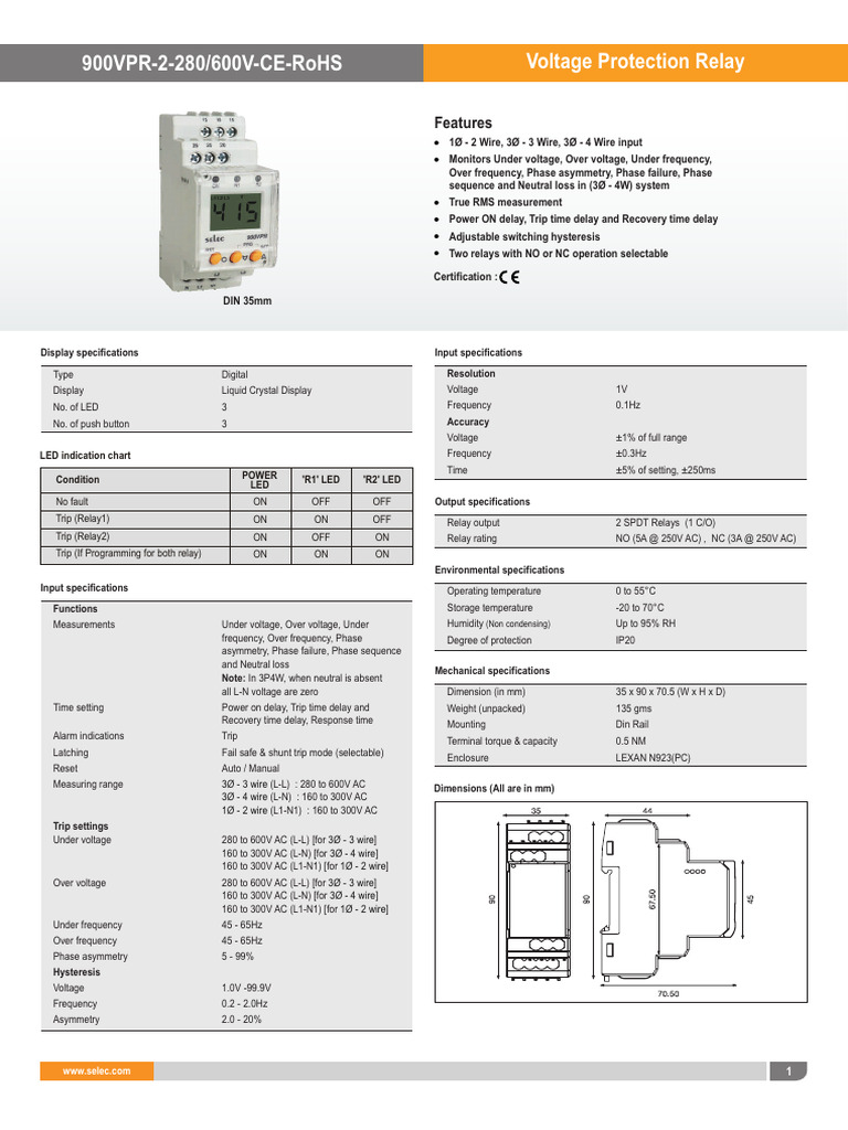 900VPR-2-280/600V-CE-RoHS Voltage Protection Relay