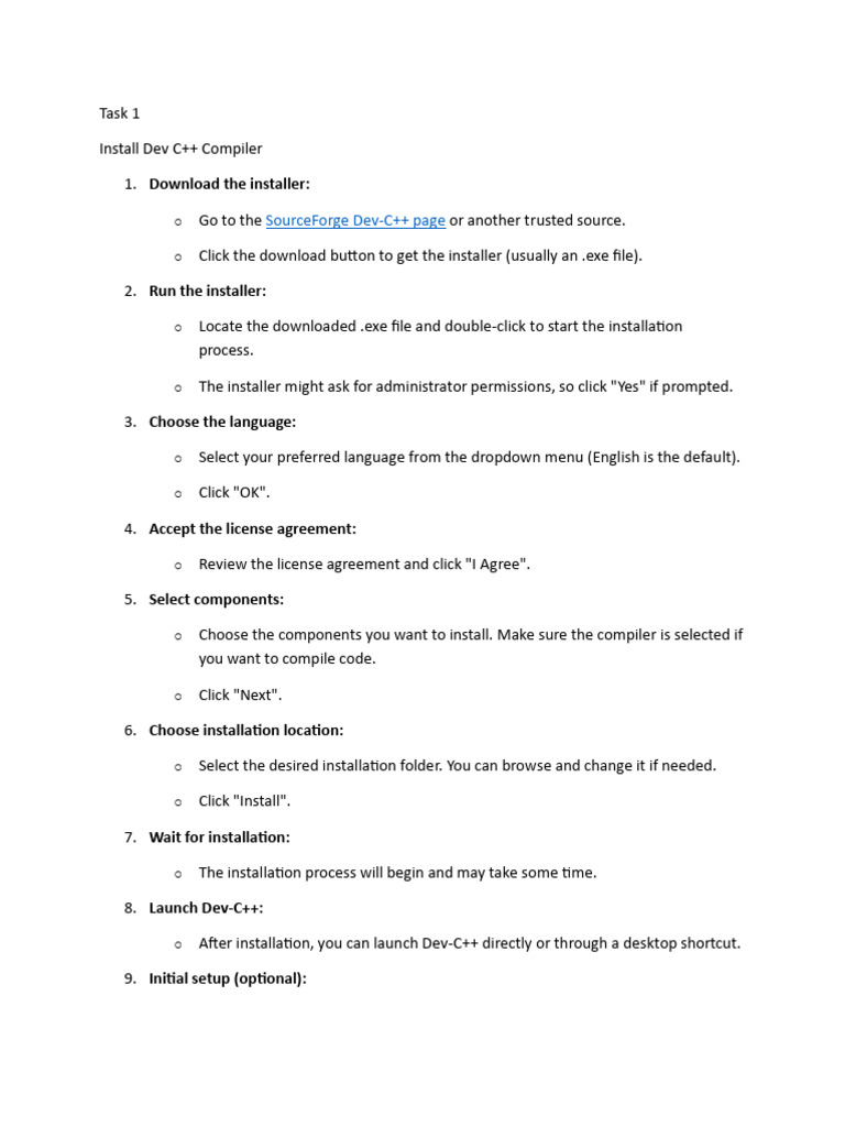 o Go to the SourceForge Dev-C++ page or another trusted source.