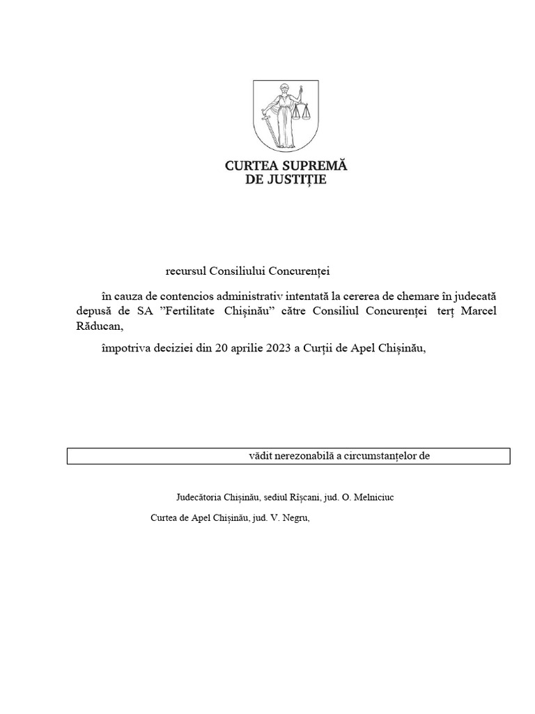 CSJ Fertilitate Chisinau Amenda Consiliul Concurentei