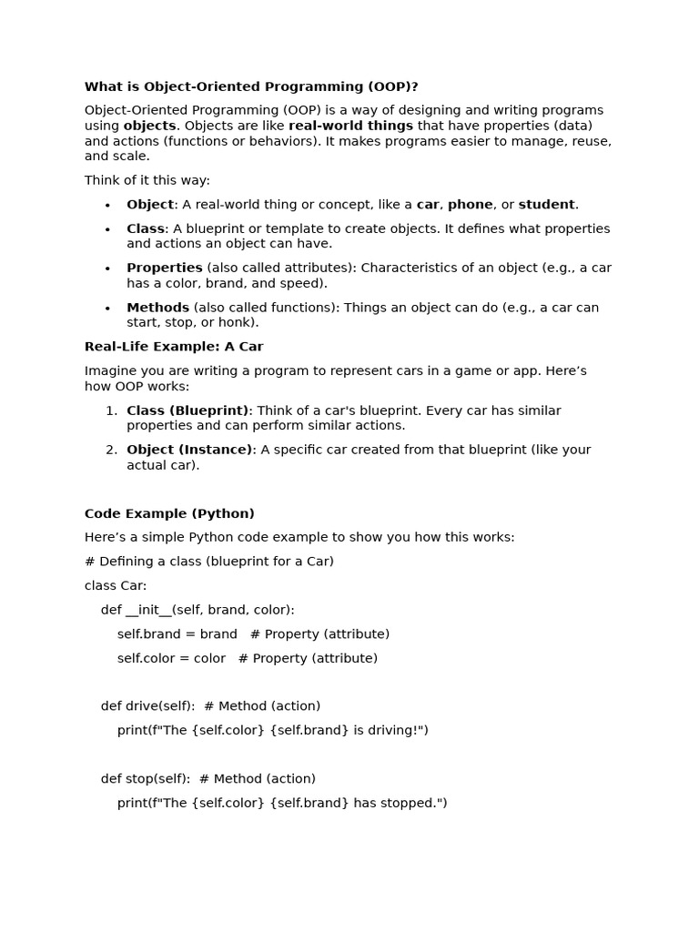 Sure! Let’s explore Object-Oriented Programming (OOP) in more detail,