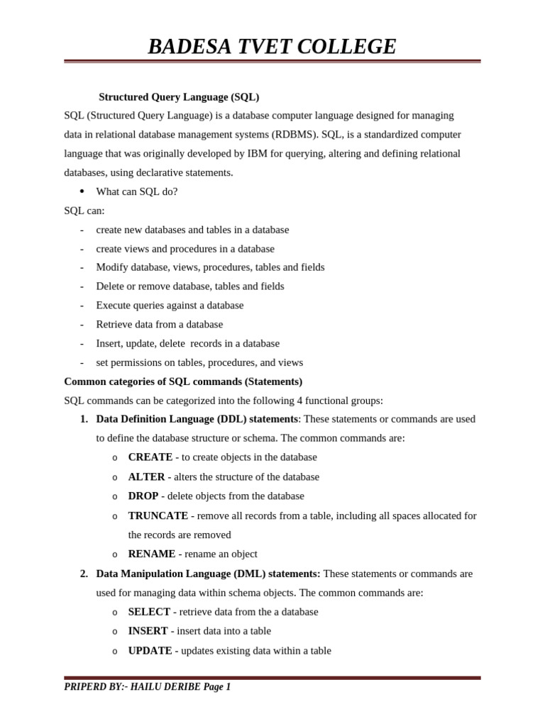 DELETE: used to erase records (not table structure). The number of records deleted may be 0,