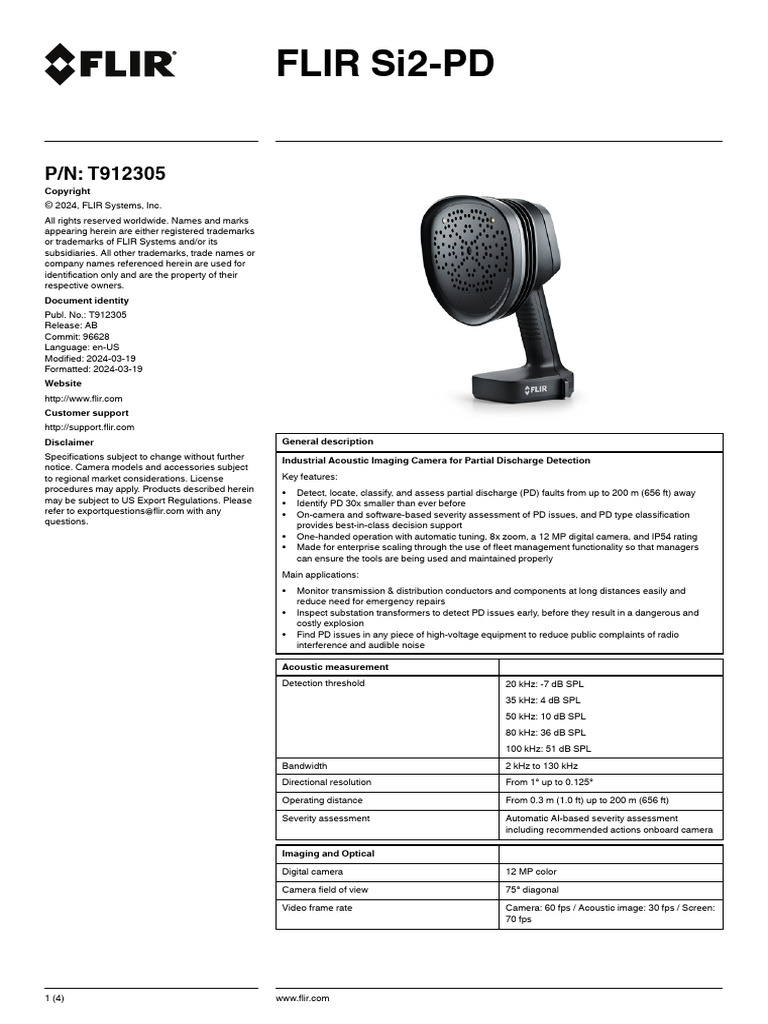 refer to exportquestions@flir.com with any • On-camera and software-based severity assessment of PD issues, and PD type classification