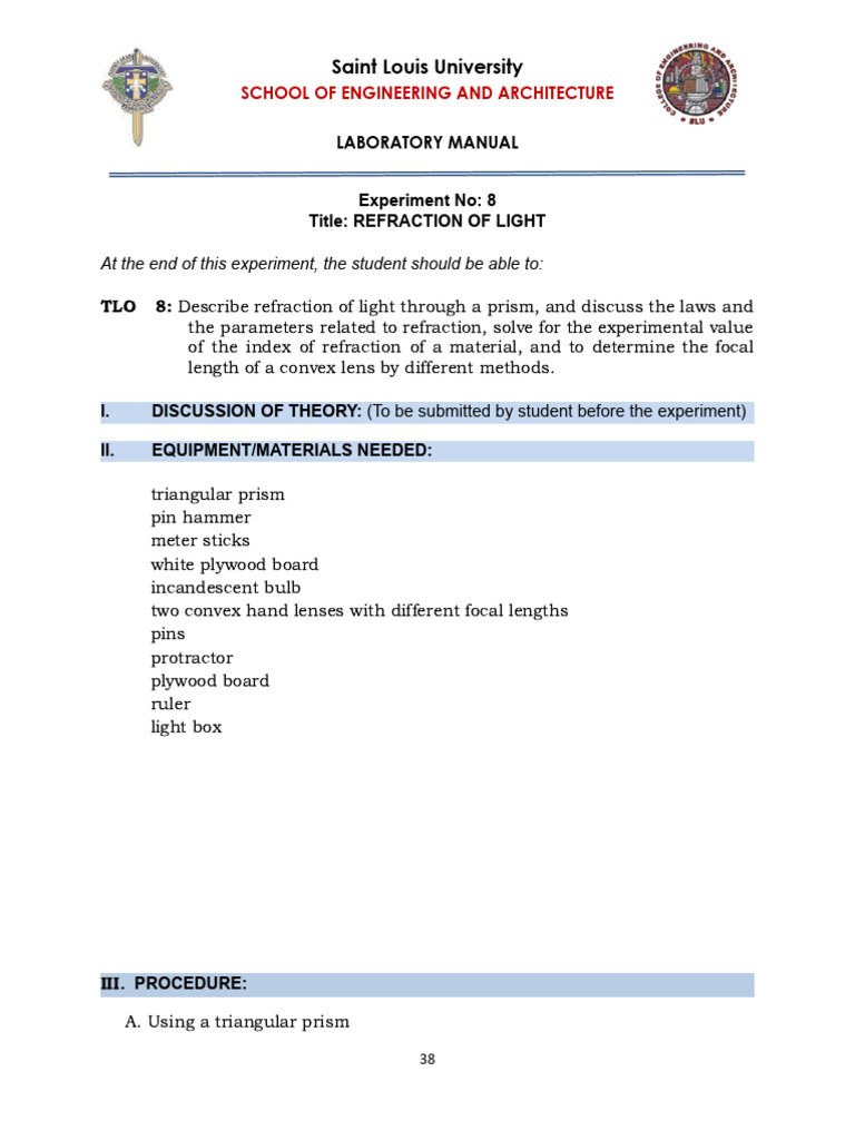 I. DISCUSSION OF THEORY: (To be submitted by student before the experiment)
