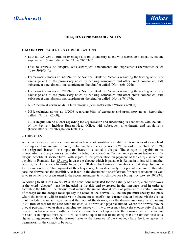 • Law no 59/1934 on cheques, with subsequent amendments and supplements (hereinafter called