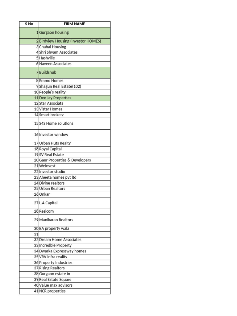 S No FIRM NAME