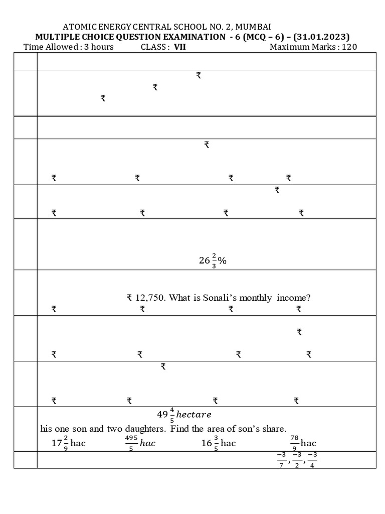 Time Allowed : 3 hours CLASS : VII Maximum Marks : 120