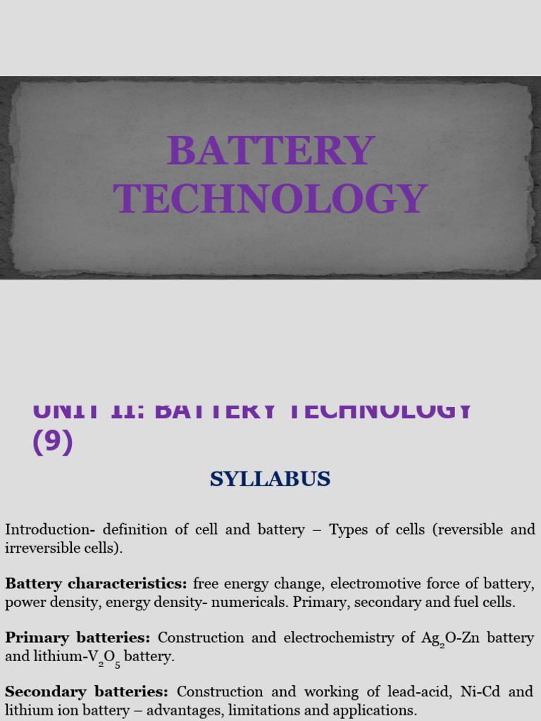 Introduction- definition of cell and battery – Types of cells (reversible and