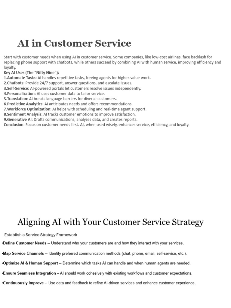 •Understand AI’s Role – Recognize AI’s strengths (automating tasks, 24/7 support) and its limitations (lack of human empathy) to