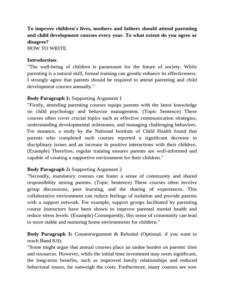 and child development courses every year. To what extent do you agree or