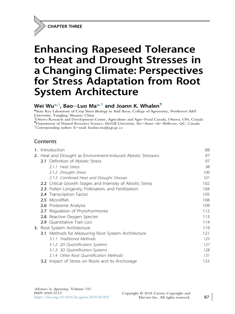 Wu, W., Duncan, R., Ma, B.L., 2017. Quantification of canola root morphological traits