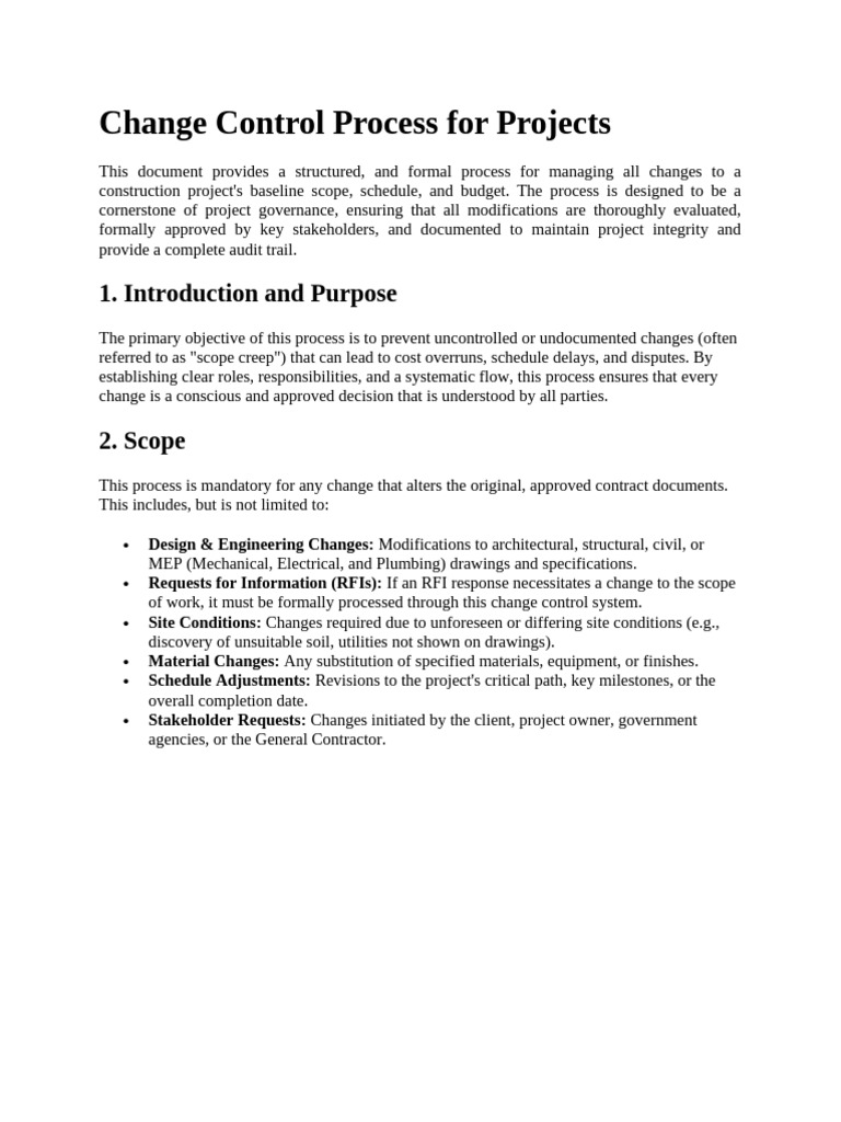 This document provides a structured, and formal process for managing all changes to a