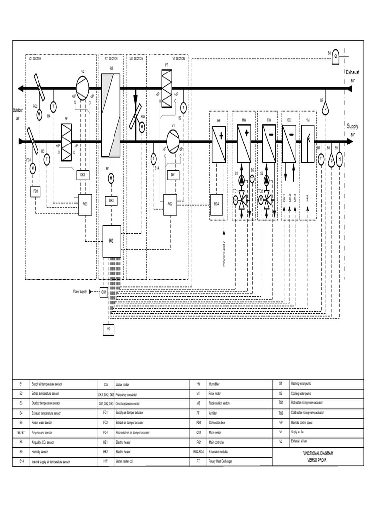 B14 Internal supply air temperature sensor HW Water heater coil RT Rotary Heat Exchanger VERSO PRO R