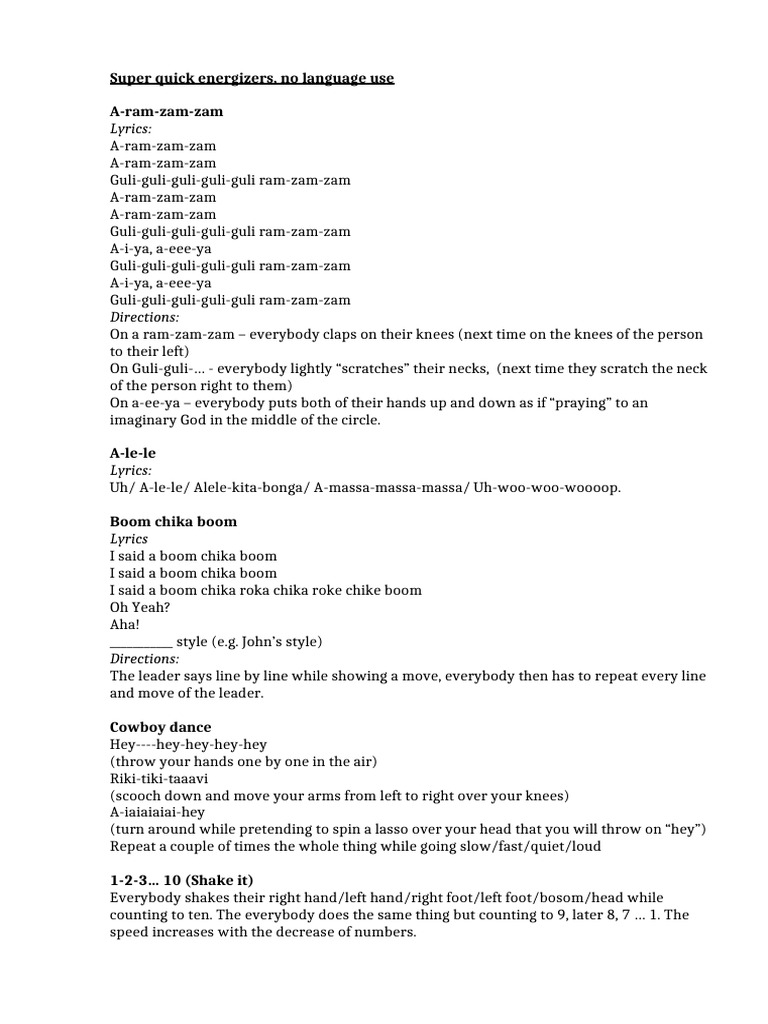 body parts together. When the leader says People-to-people, everybody finds a new pair.