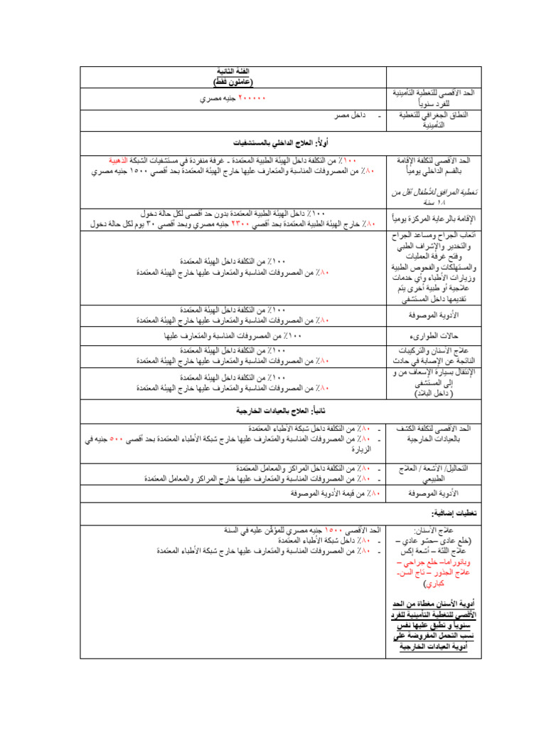 %80 -من المصروفات المناسبة والمتعارف عليها خارج شبكة األطباء المعتمدة بحد أقصى 500جنيه في بالعيادات الخارجية