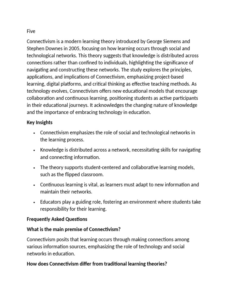 Connectivism is a modern learning theory introduced by George Siemens and