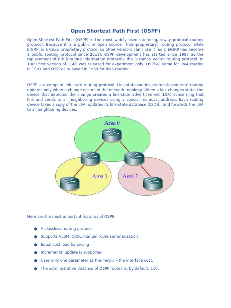 Open-Shortest-Path-First (OSPF) is the most widely used interior gateway protocol routing