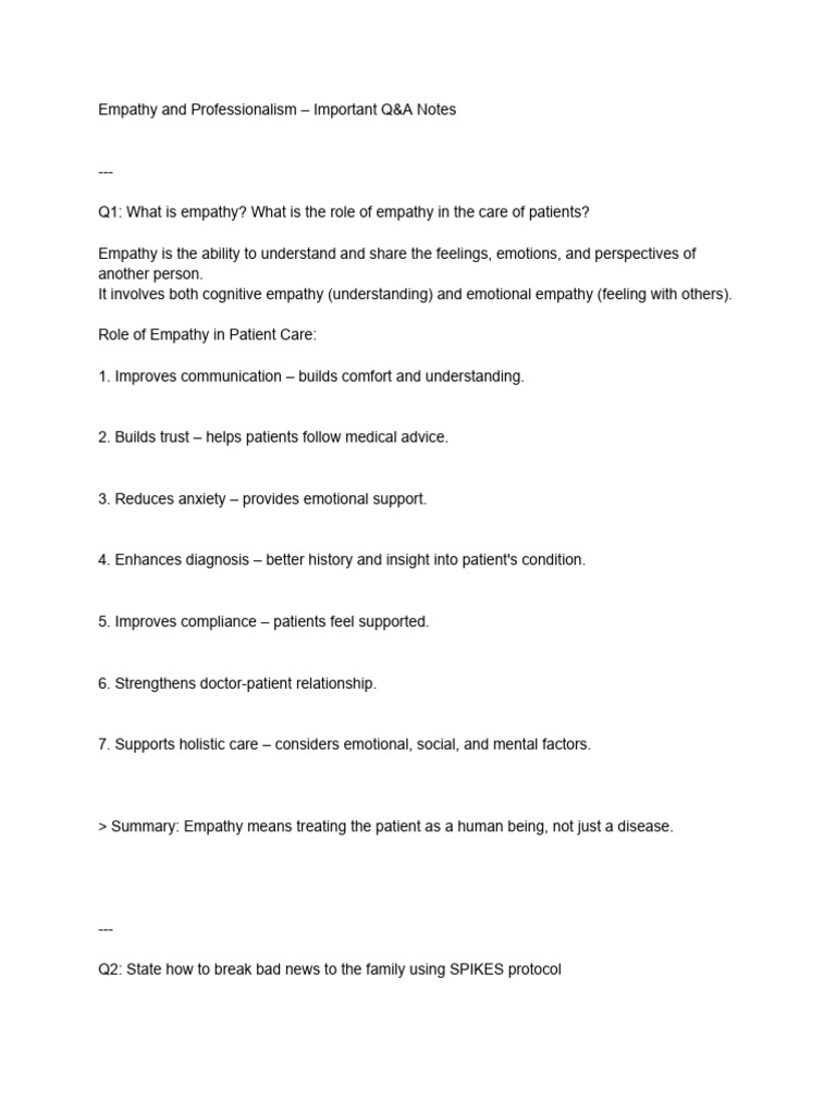 Empathy and Professionalism – Important Q&A Notes
