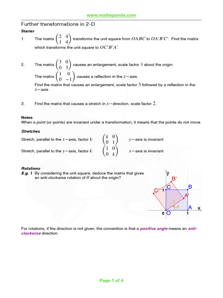 1 The matrix transforms the unit square from OA BC to OA′B′C′. Find the matrix