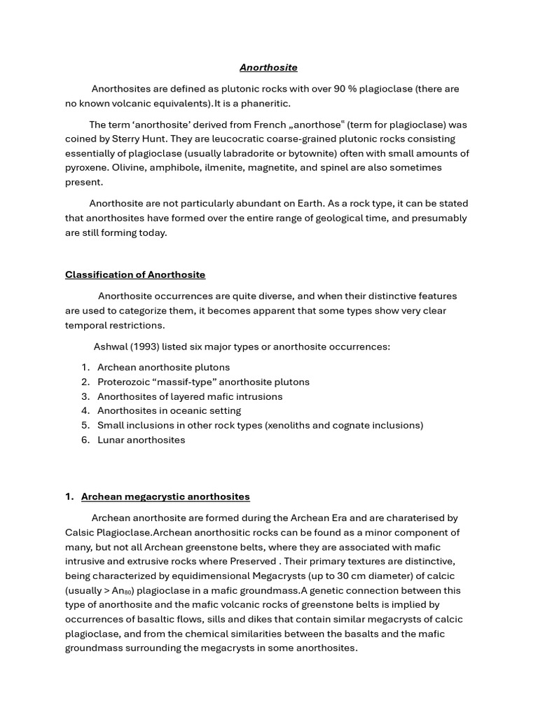 The term ‘anorthosite’ derived from French „anorthose‟ (term for plagioclase) was
