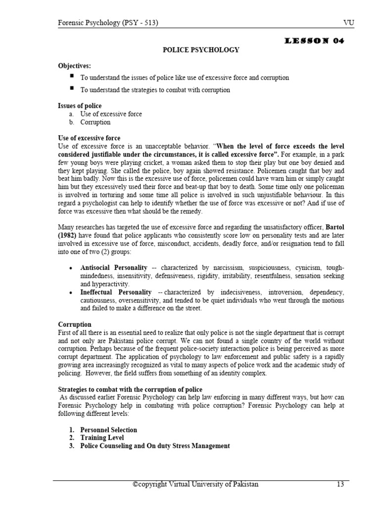 corrupt department. The application of psychology to law enforcement and public safety is a rapidly