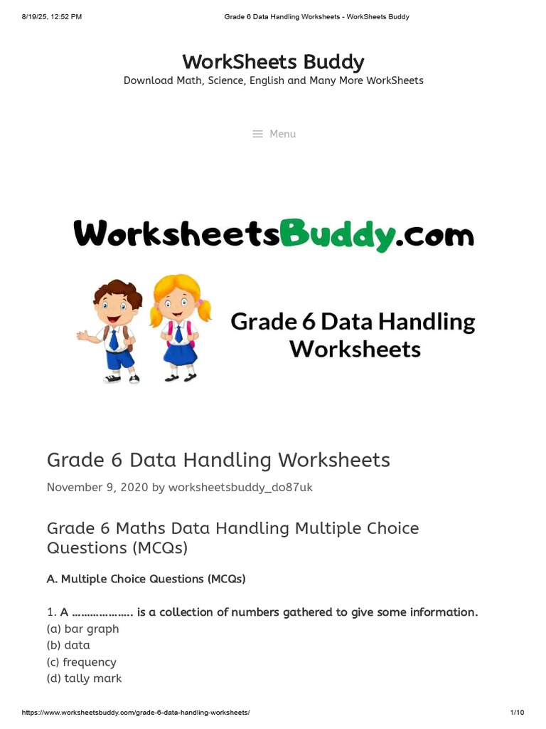 https://www.worksheetsbuddy.com/grade-6-data-handling-worksheets/ 1/10