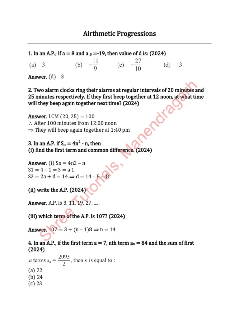 1. In an A.P.; if a = 8 and a₁0 =-19, then value of d is: (2024)
