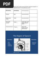 The articulation of speech sounds is called the speech mechanism. This mechanism contains