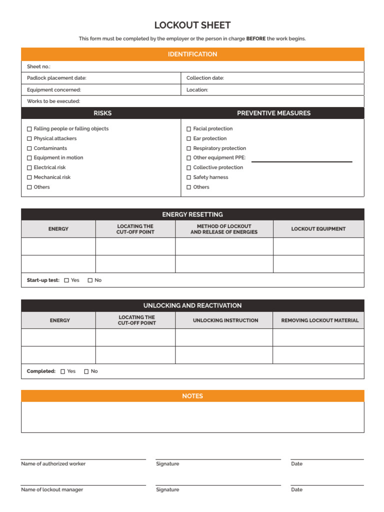 LOCKOUT SHEET