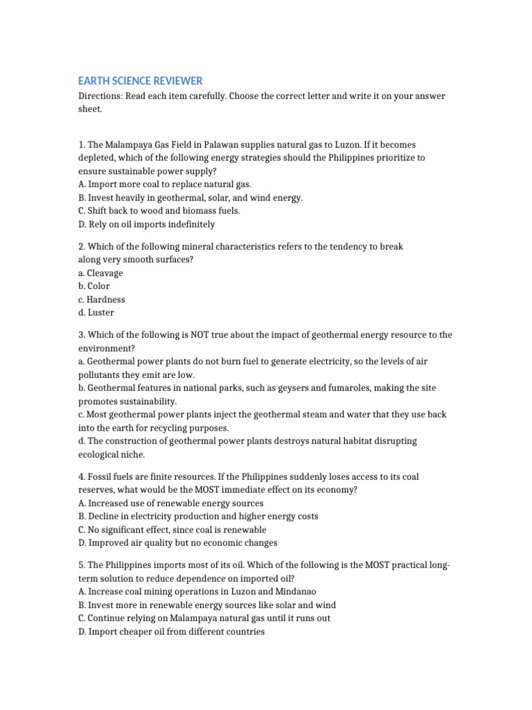 1. The Malampaya Gas Field in Palawan supplies natural gas to Luzon. If it becomes