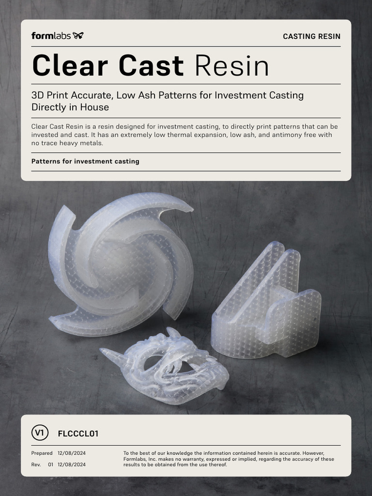 Clear Cast Resin is a resin designed for investment casting, to directly print patterns that can be