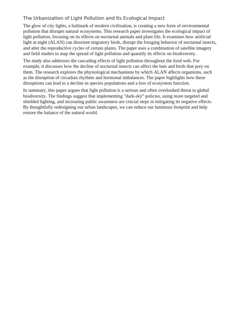pollution that disrupts natural ecosystems. This research paper investigates the ecological impact of
