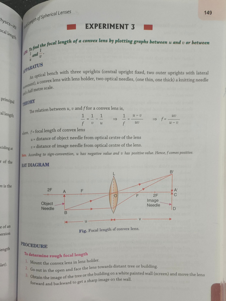 Ocallength the focal length of a convex lens by plotting graphs between u and vor between