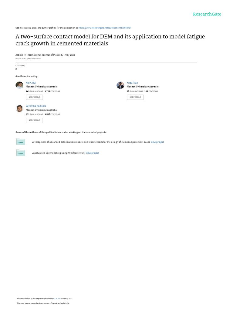 James Grenfell , Ha H. Bui , A two-surface contact model for DEM and its application to model