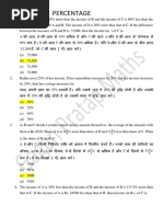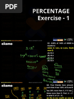 The document contains various mathematical problems related to percentages, fractions, and their conversions, along with examples of real-life applications such as weight loss, price increases, and examination scores. It includes multiple-choice questions and calculations to determine percentage changes in different scenarios. The content is structured as a study guide for students preparing for mathematics examinations.