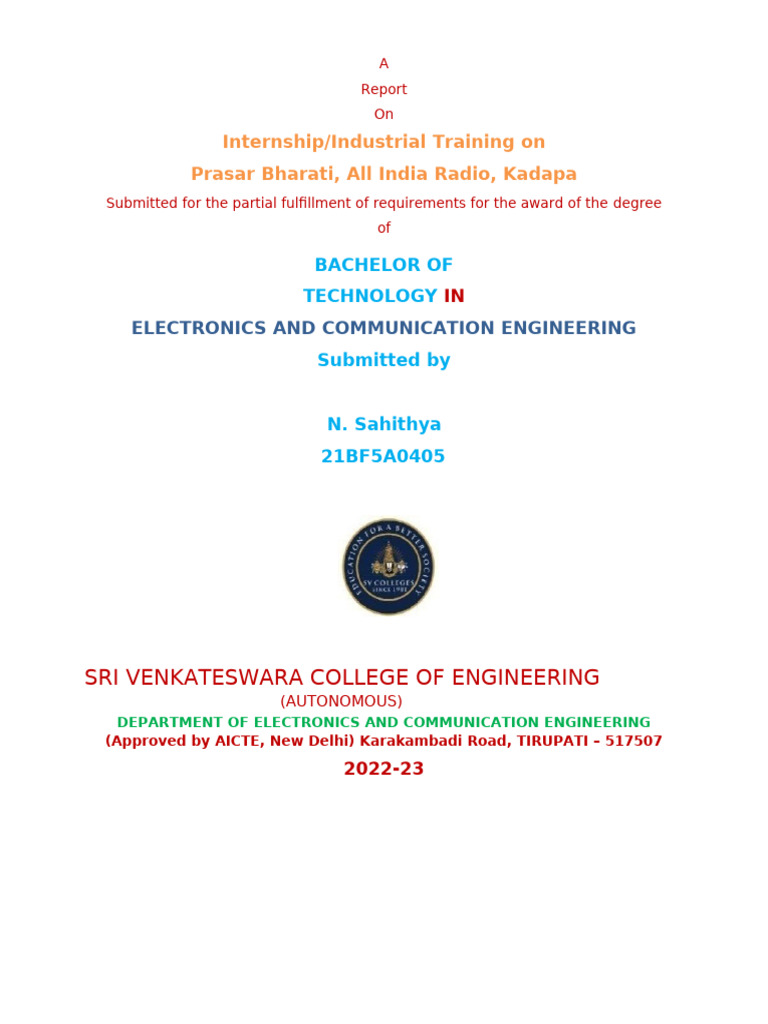 undergone at All India Radio Station, Kadapa. The organization "PRASAR BHARATI"