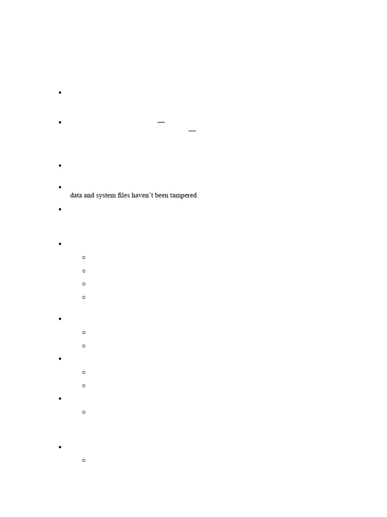 • Integrity: Measures like checksums, digital signatures, and secure logging help ensure that