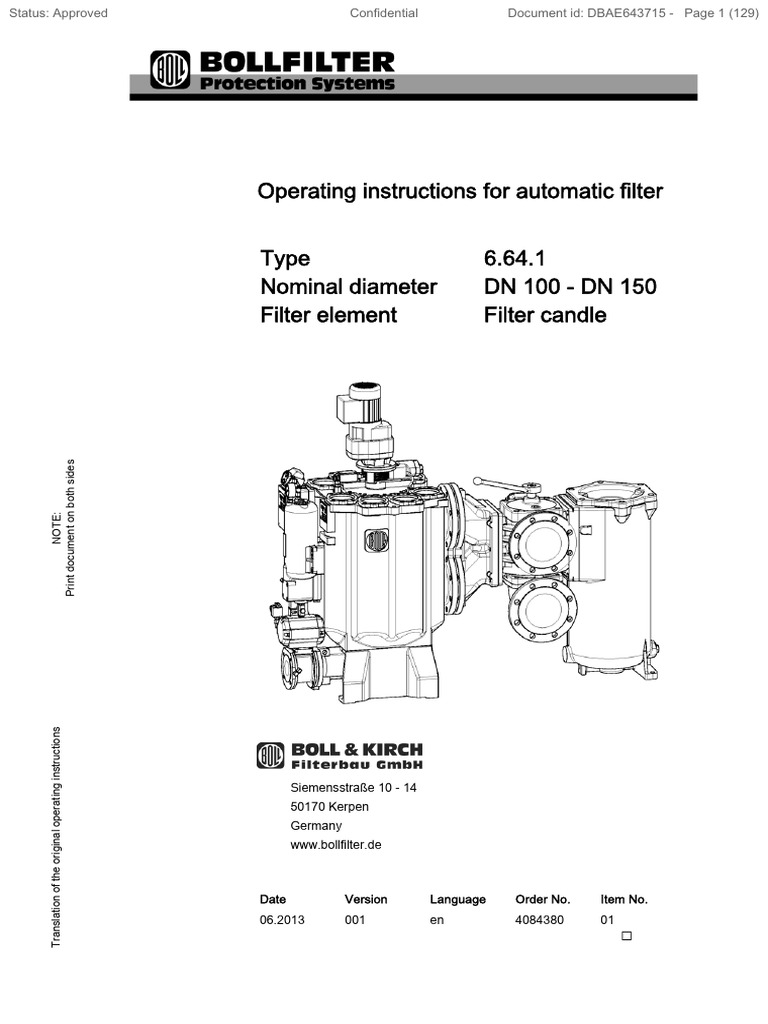 BOLL & KIRCH Filterbau GmbH recommends fitting both measuring points with
