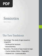 Semiotics is the study of signs, symbols, and their use or interpretation. It encompasses