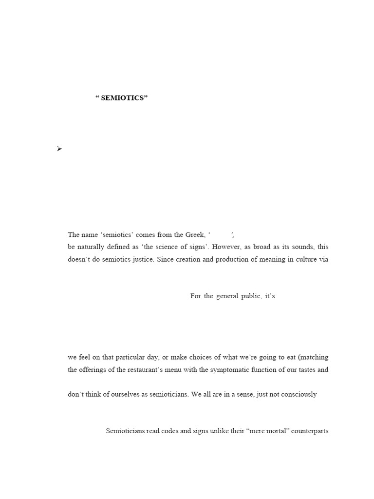and society. Semioticians read codes and signs unlike their “mere mortal” counterparts
