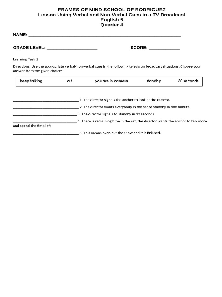 Lesson Using Verbal and Non-Verbal Cues in a TV Broadcast