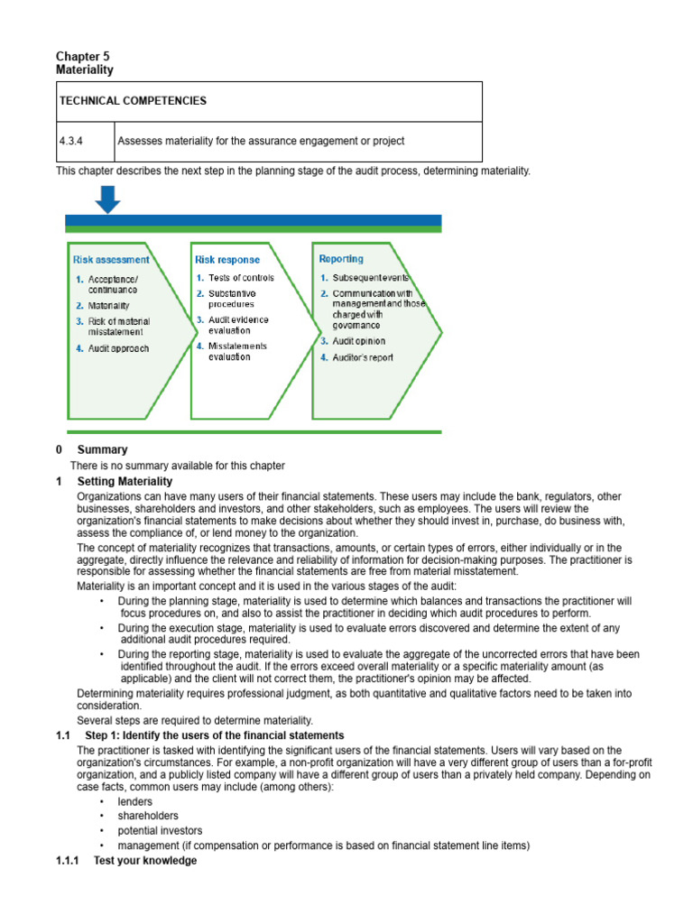 This chapter describes the next step in the planning stage of the audit process, determining materiality.