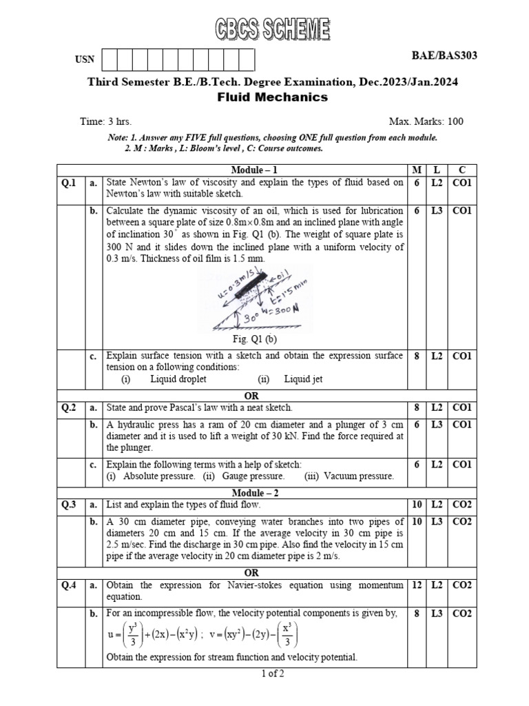Q.1 a. State Newton’s law of viscosity and explain the types of fluid based on 6 L2 CO1