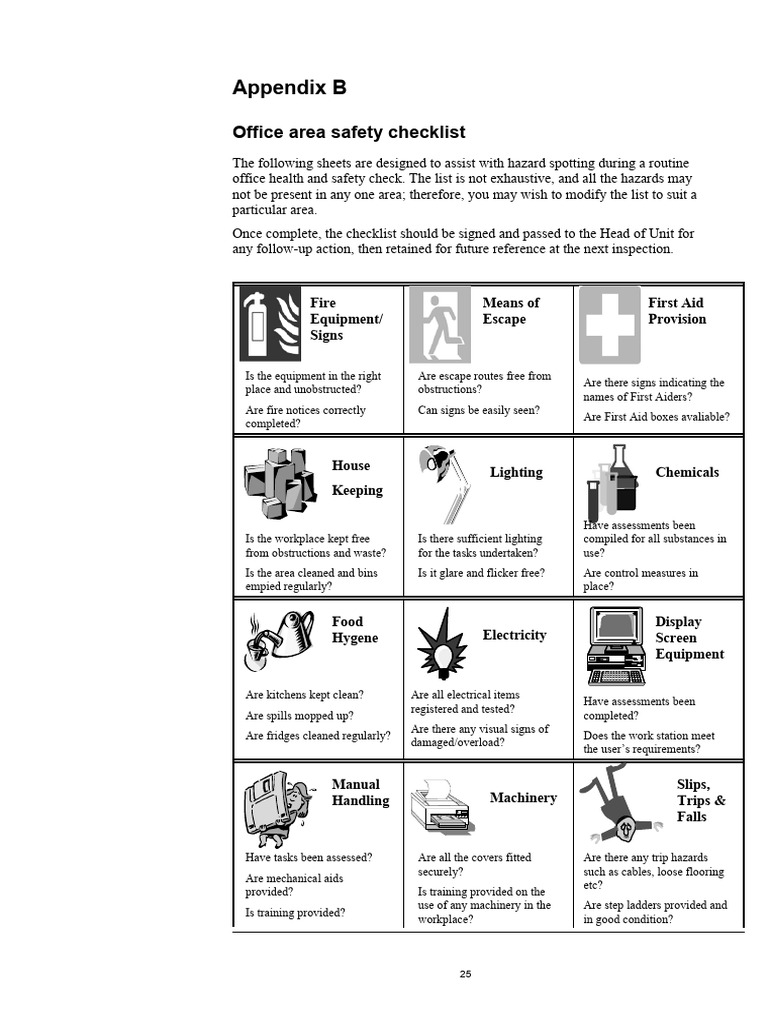 Office area safety checklist