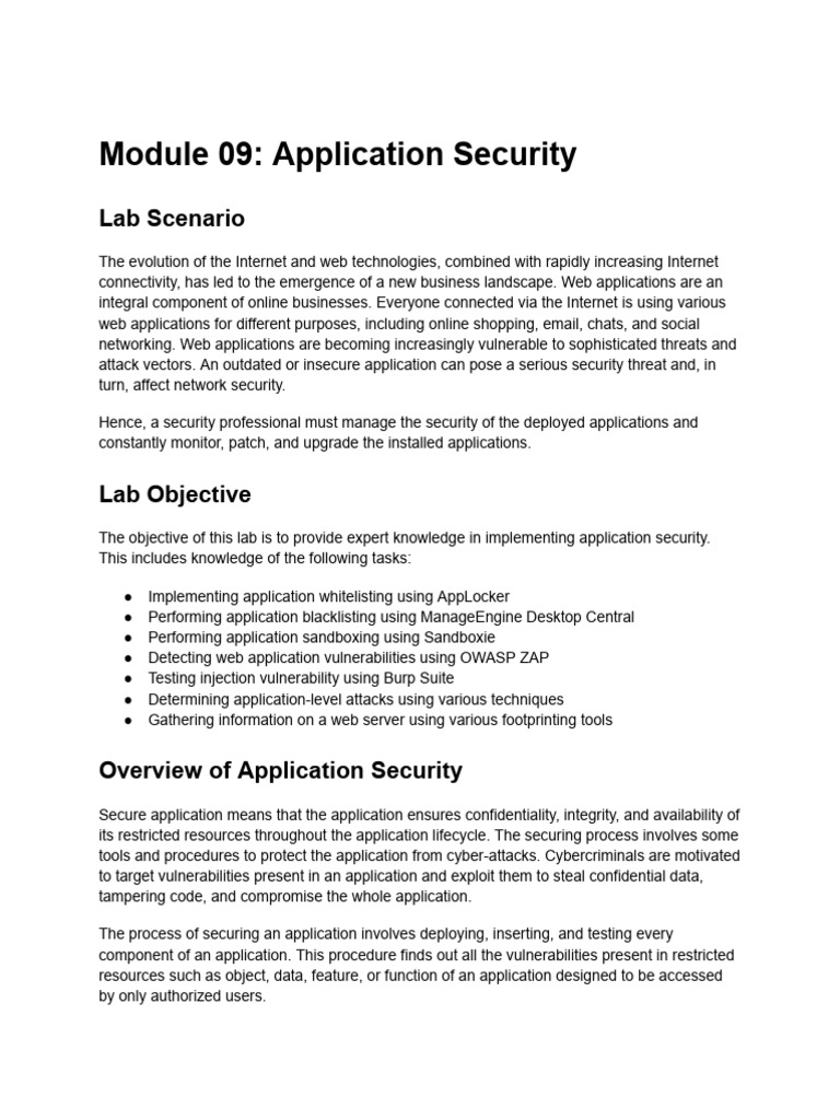 implement application security. Recommended labs that will assist you in learning various