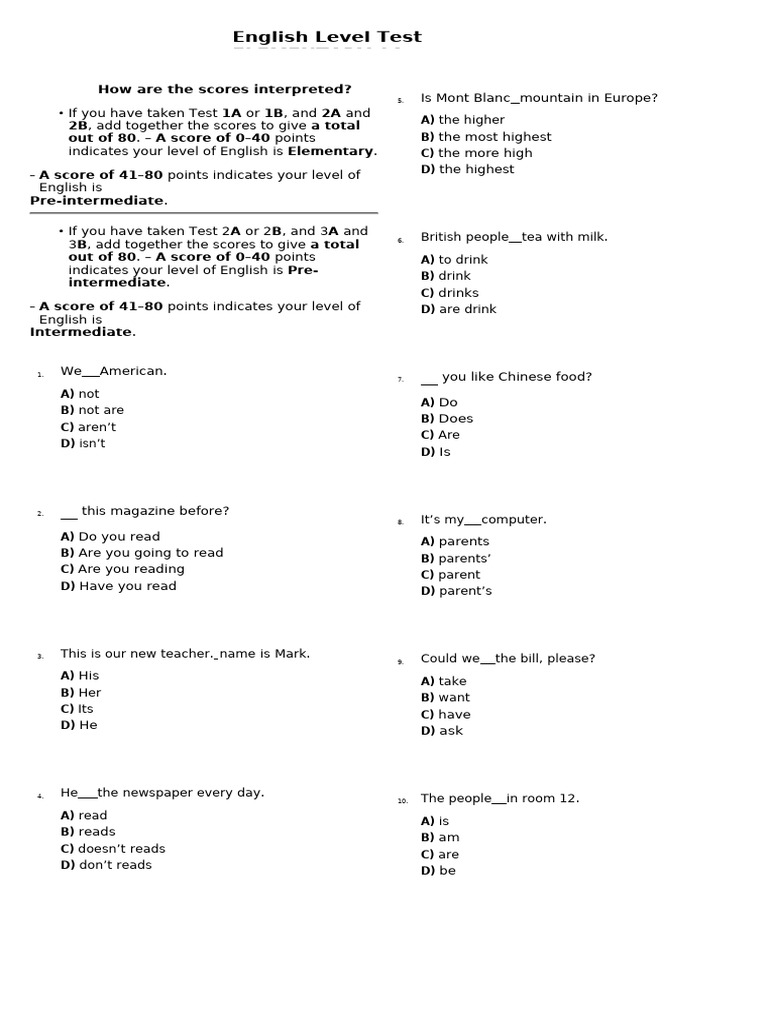 English Level Test