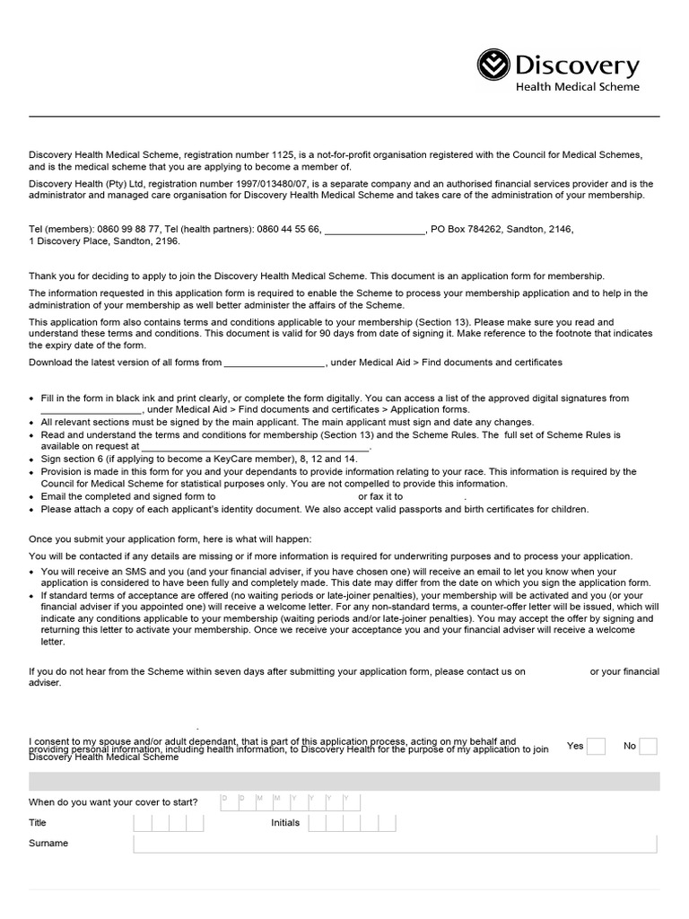Discovery Health Medical Scheme, registration number 1125, is regulated by the Council for Medical Schemes and administered by Discovery Health (Pty) Ltd, registration number 1997/013480/07, an authorised Page 1 of 16