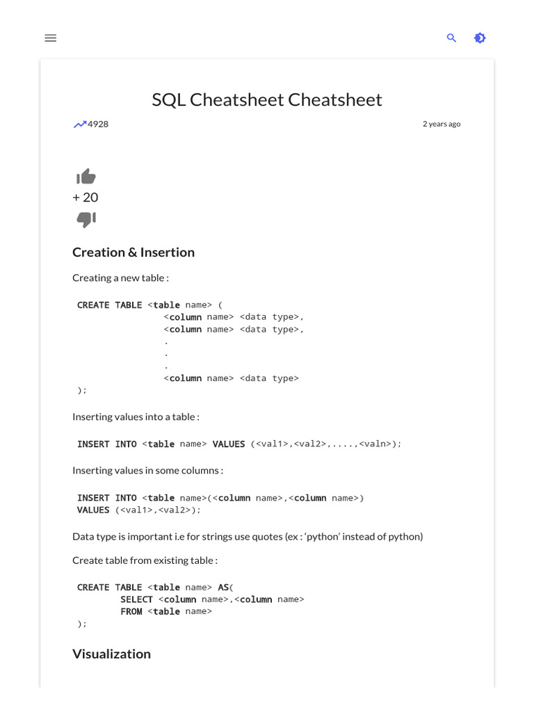 SQL Cheatsheet Cheatsheet